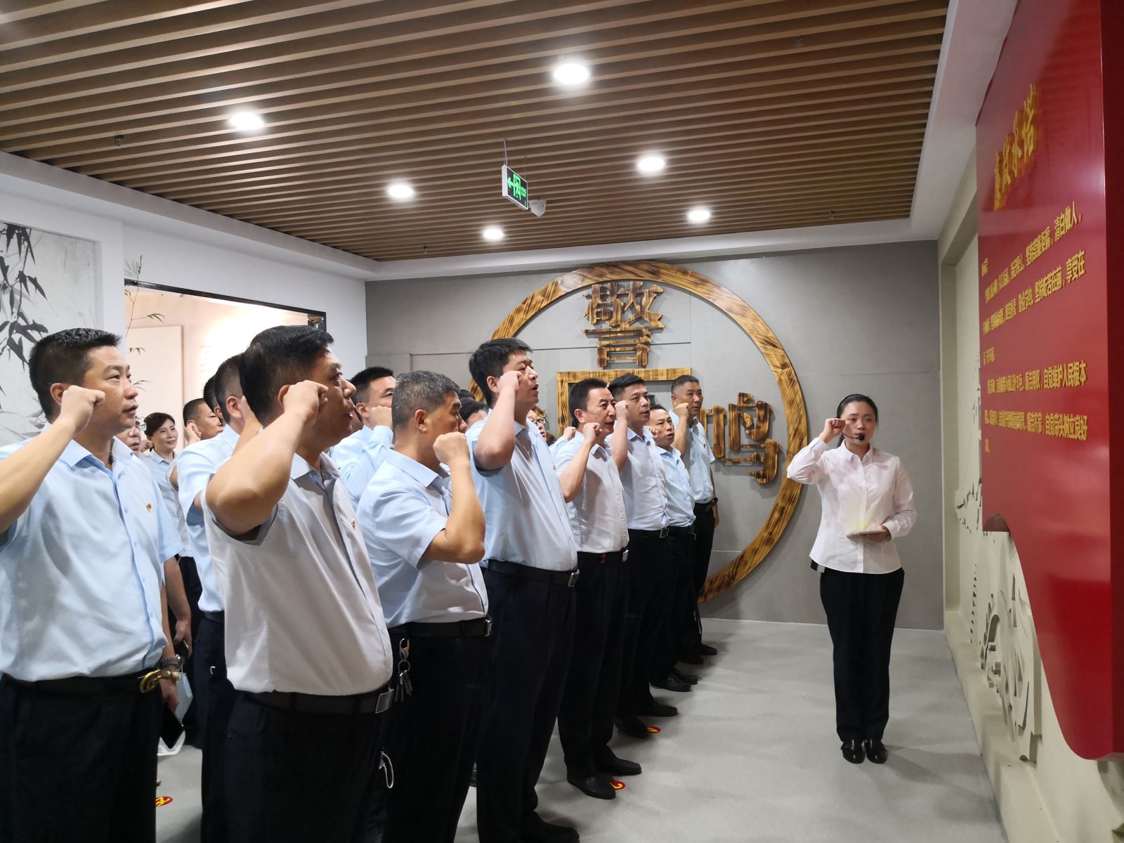 參觀的最后,在廉政承諾墻前,集團黨委書記、總經理王學兵帶領全體黨員干部,高舉右拳,共同進行了莊嚴的廉政承諾宣誓。大家紛紛表示,在今后的工作和生活中,要牢固樹立紀法意識,筑牢思想堤壩,真正做到知規知責知廉潔、守紀守法守初心,以案為鑒,清清白白做人、干干凈凈做事,永葆清正廉潔的政治本色。