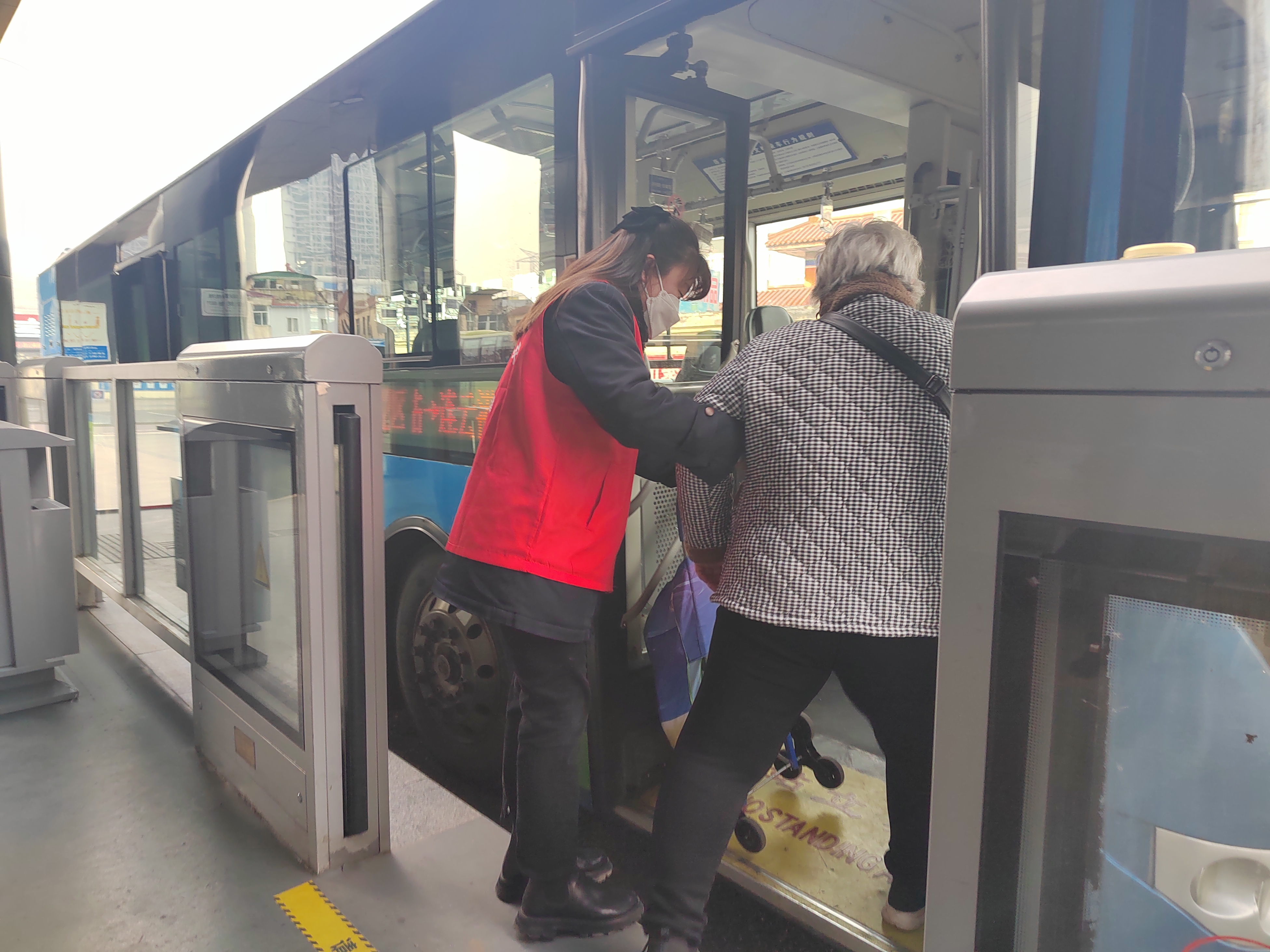 由于復工復產進度明顯加快,生產要素全面復蘇,公交客流量大幅上升,為保證站臺乘車進出有序,營造良好的出行環境,快速公交事業部選擇在海州客運站、市民廣場、龍河廣場、購物中心等10個大客流站臺進行文明乘車引導服務,扶老攜幼,解答乘客乘車咨詢,主動幫助有需要的乘客拿行李,以實際行動帶動廣大市民文明安全出行。市民乘客們也非常配合志愿者,文明有序乘車。