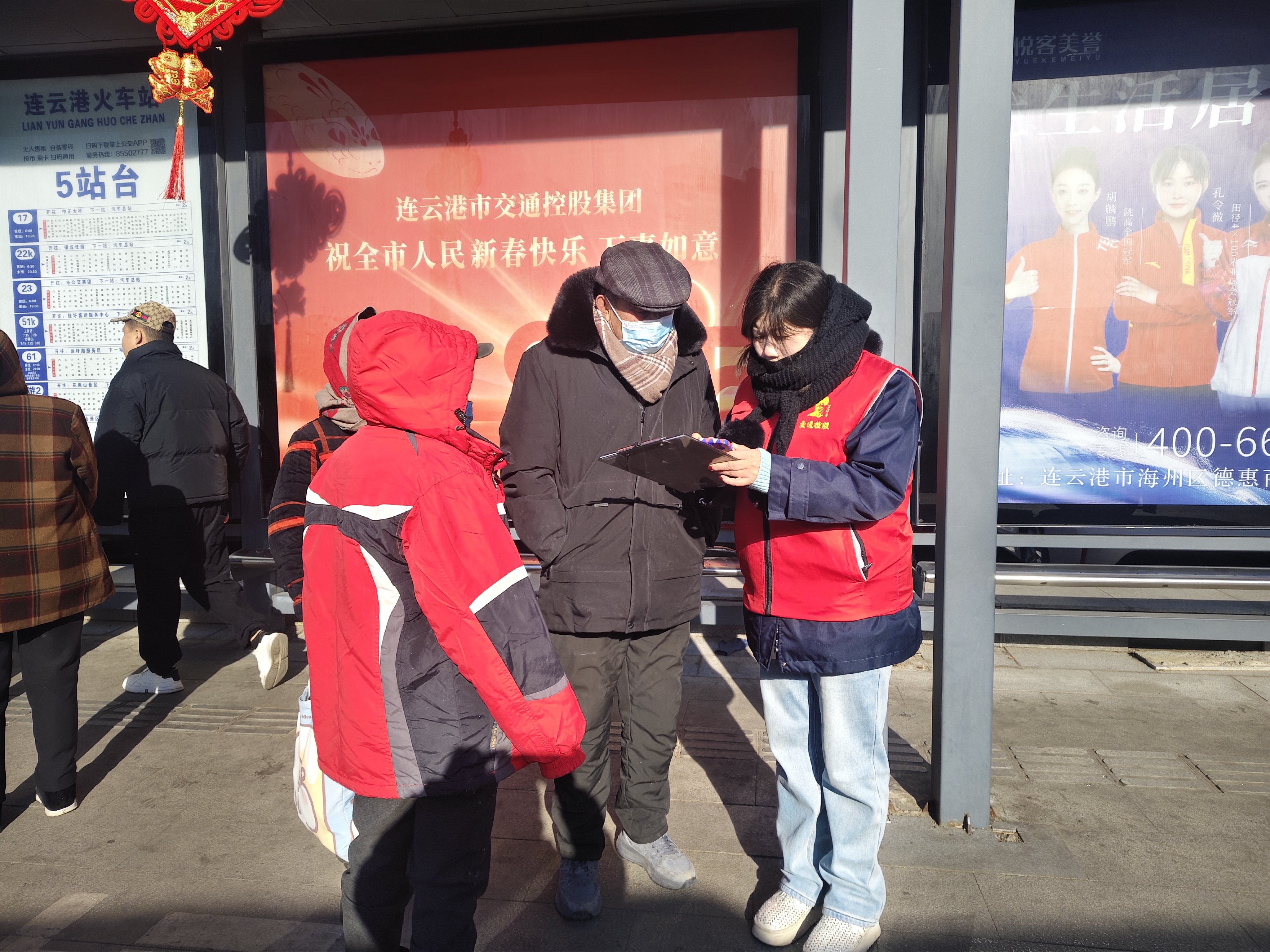 2月7日,連云港經(jīng)歷了一場大幅度的降溫,氣溫驟降至零下8度、西北風(fēng)5級。在如此嚴(yán)寒的天氣中,為保障春運(yùn)期間高鐵站乘客的順利出行,連云港市公交集團(tuán)的志愿者們不畏嚴(yán)寒,堅(jiān)守在高鐵公交站臺(tái)。他們身穿的紅色馬甲在寒風(fēng)中格外醒目,猶如一團(tuán)團(tuán)跳動(dòng)的火焰,為冬日增添了幾分暖意。