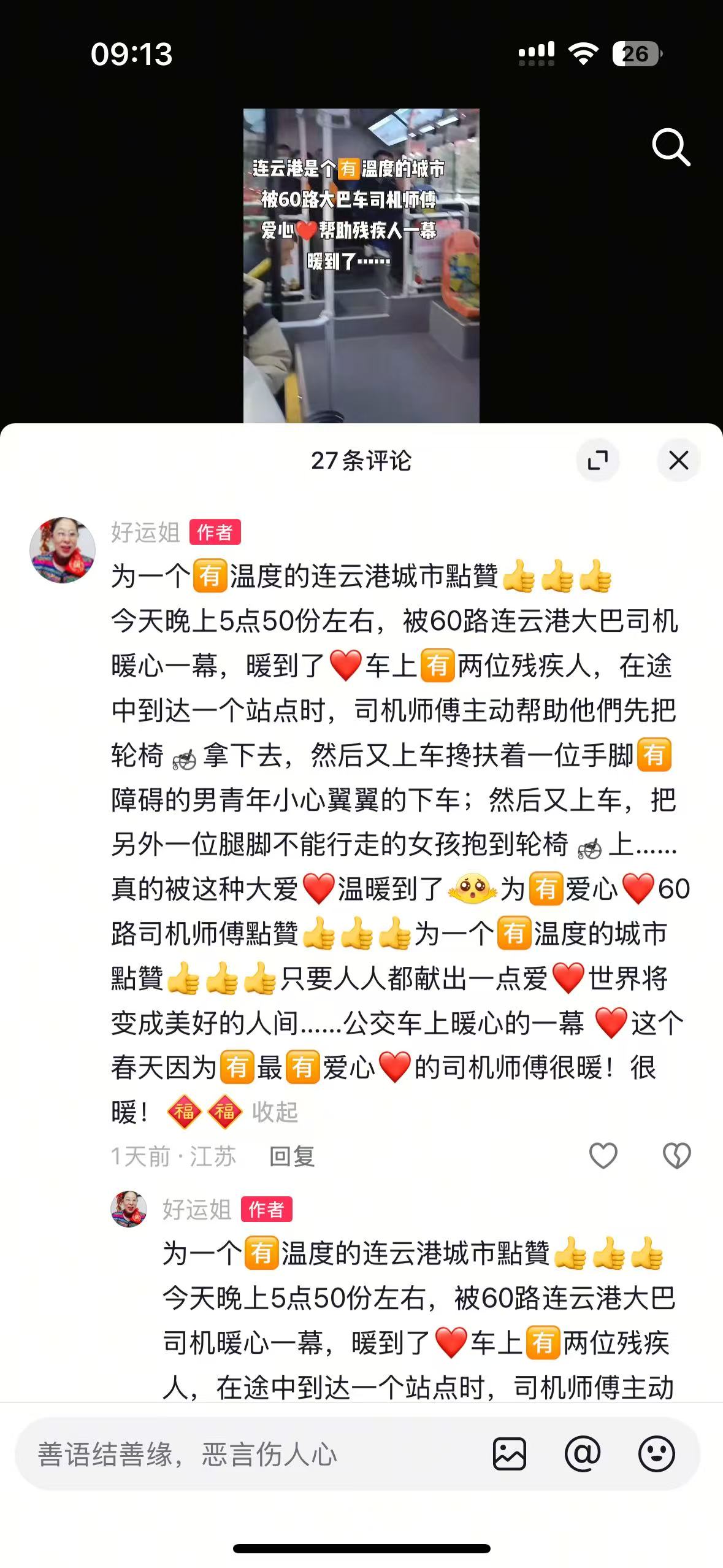這份溫暖在第二天得到了更廣泛地傳播。2月22日,市民發布的這條抖音作品被連云港手機臺轉發,引起了眾多網友的關注和點贊,大家紛紛為宋阿兵的善舉豎起大拇指,贊揚他的熱心與善良。