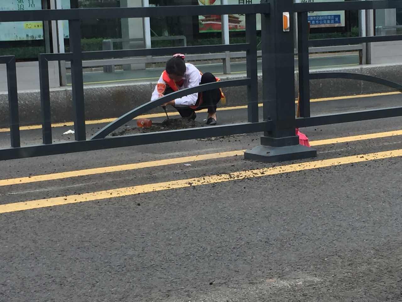 二號線的組長范娟,無論刮風下雨,寒冬酷暑,都能在站臺里面看到她忙碌的身影,平時她還利用休息時間,去無人站臺檢查設施設備,打掃衛生,快車道被車輛剎車碾壓出現了一個大坑,她考慮到不把坑盡快填補起來,會影響車輛進站的平穩,也會刮壞車輛的底盤,外面還是烈日當頭,太陽把黑色的瀝青路面炙烤的發亮,她卻拿起鐵锨修補起了路面,一鐵锨一鐵锨的鏟平,汗水一次又一次的從她的臉頰滑落。