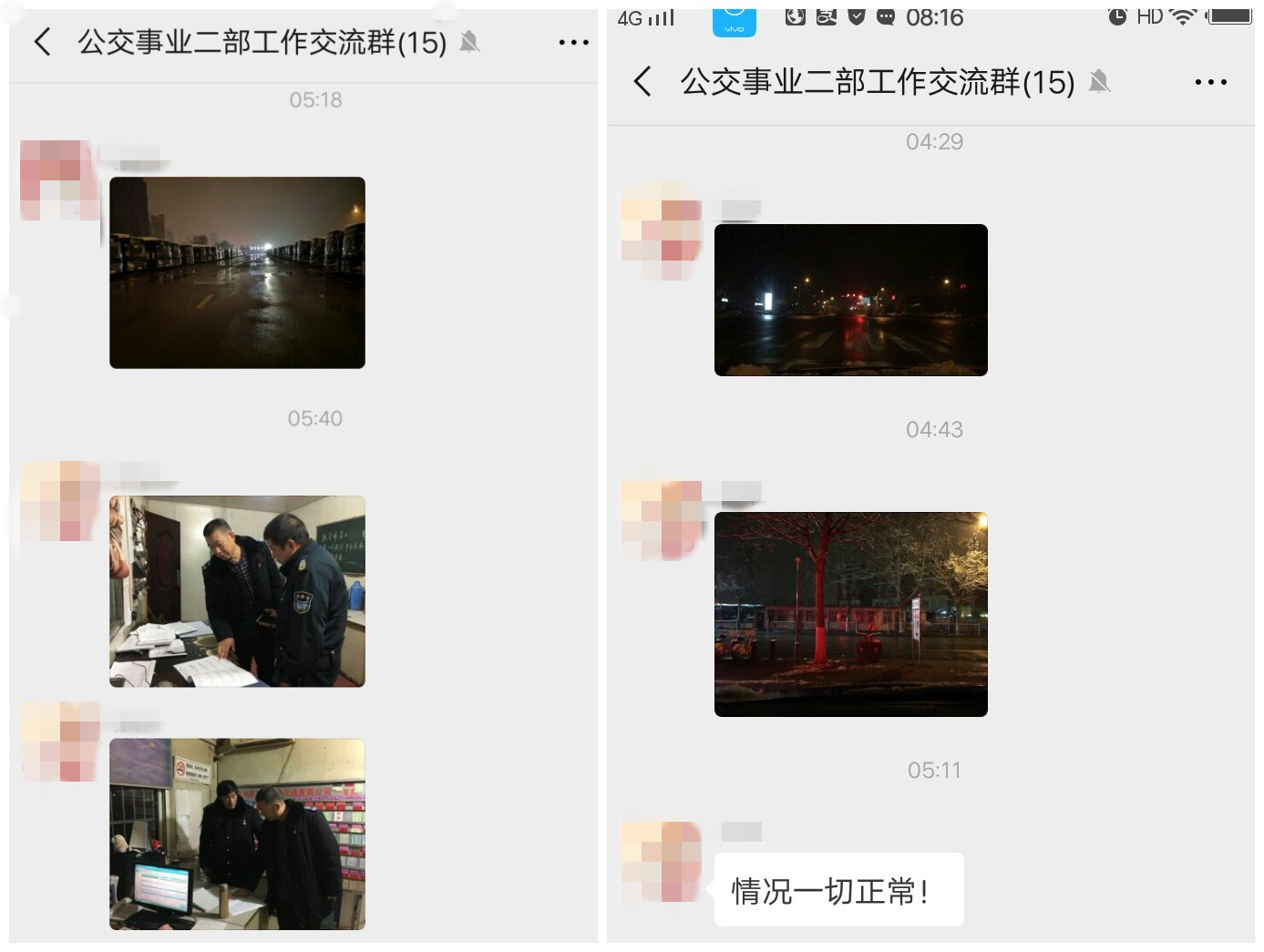 公司提前進(jìn)入臨戰(zhàn)狀態(tài),全面實(shí)行24小時(shí)值班、倒班制度,各相關(guān)負(fù)責(zé)人明確責(zé)任分工,做到快速反應(yīng)、有效應(yīng)對(duì)。各領(lǐng)導(dǎo)干部、管理人員、調(diào)度員、駕駛員均提前到崗,幫助清掃積雪、鏟除積冰,保證公交首班車準(zhǔn)點(diǎn)發(fā)車。經(jīng)過(guò)全員的共同努力,首班車輛全部準(zhǔn)點(diǎn)發(fā)出,保障了線路的有序運(yùn)營(yíng)。
