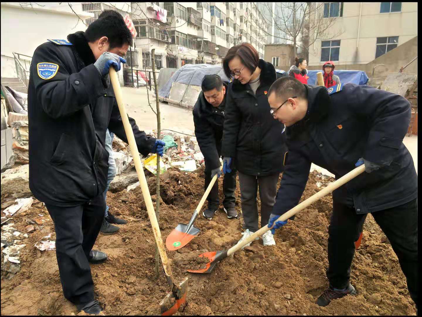 此次義務植樹活動是由公交集團快速公交事業部共建單位棠梨社區發起的,參加植樹的人員兩到三人一組,挖坑、放苗、回填土分工合作,現場充滿了歡聲笑語。為了保證樹苗栽種成活率,專業種植人員在現場對大家進行了栽樹技術指導,通過一個多小時的勞動,二十幾個人共栽了近百棵海棠樹。