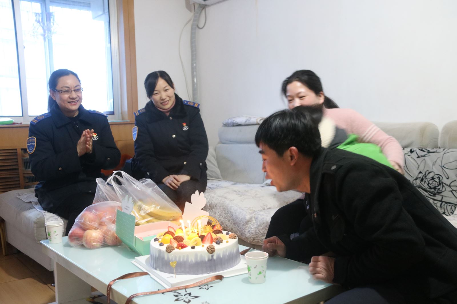 “祝你生日快樂,祝你生日快樂……”搖曳的燭光伴隨著溫馨的生日祝福傳遍了房間的角落。3月5日這天正是公交事業一部59路駕駛員王海濤的40歲生日,受集團工會委托,公交事業一部總支書記王有利,工會主席胡秀琴一行帶著生日蛋糕,前往王海濤的家中,為他過上了一個特殊的生日。