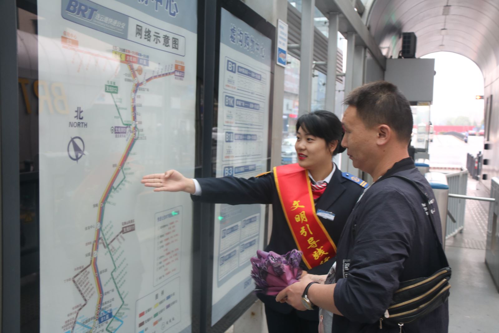 BRT一號線的站務員們始終堅持全心全意為乘客服務的宗旨,牢固樹立“乘坐BRT,服務到家”的服務理念,以創建活動和各類優質服務競賽以及“星級”站務員評選活動為載體,大力倡導奉獻精神,嚴格規范職業行為。以實際行動把規范、安全、便捷、熱情、放心的服務奉獻給每一位乘客,用她們貼心、細心、愛心的服務贏得廣大乘客和市民的一致好評和贊揚。