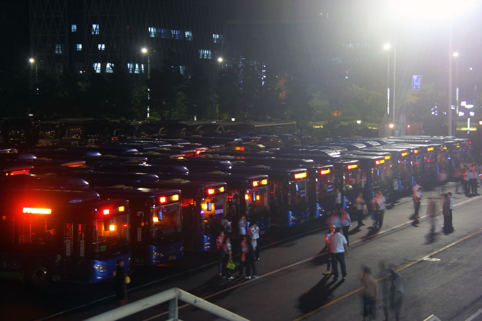 演唱會(huì)散場后,公交集團(tuán)投入50臺(tái)運(yùn)力在體育中心東門停車場等候,結(jié)合客流出行需求,分別開通了途經(jīng)市區(qū)解放路、蒼梧路、海連路、朝陽路、港城大道等主干道的5條直通車,同時(shí)對(duì)BRT一號(hào)線進(jìn)行了班次加密。集團(tuán)領(lǐng)導(dǎo)班子成員、機(jī)關(guān)各部門、權(quán)屬單位主要負(fù)責(zé)人一同到達(dá)現(xiàn)場,共同參與現(xiàn)場觀眾的輸送工作,確保2019“連云港之夏”交通運(yùn)輸保障工作的圓滿完成。經(jīng)統(tǒng)計(jì),演唱會(huì)散場后公交集團(tuán)現(xiàn)場疏散客流共約2045人。